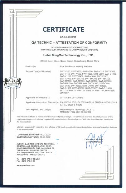 Hebei Mingmai Technology Co.,LTD (MM-Tech) चीन में थर्मोप्लास्टिक वेल्डिंग उपकरण के एक व्यापक निर्माता और एक अनुभवी पेशेवर निर्यातक में से एक है।